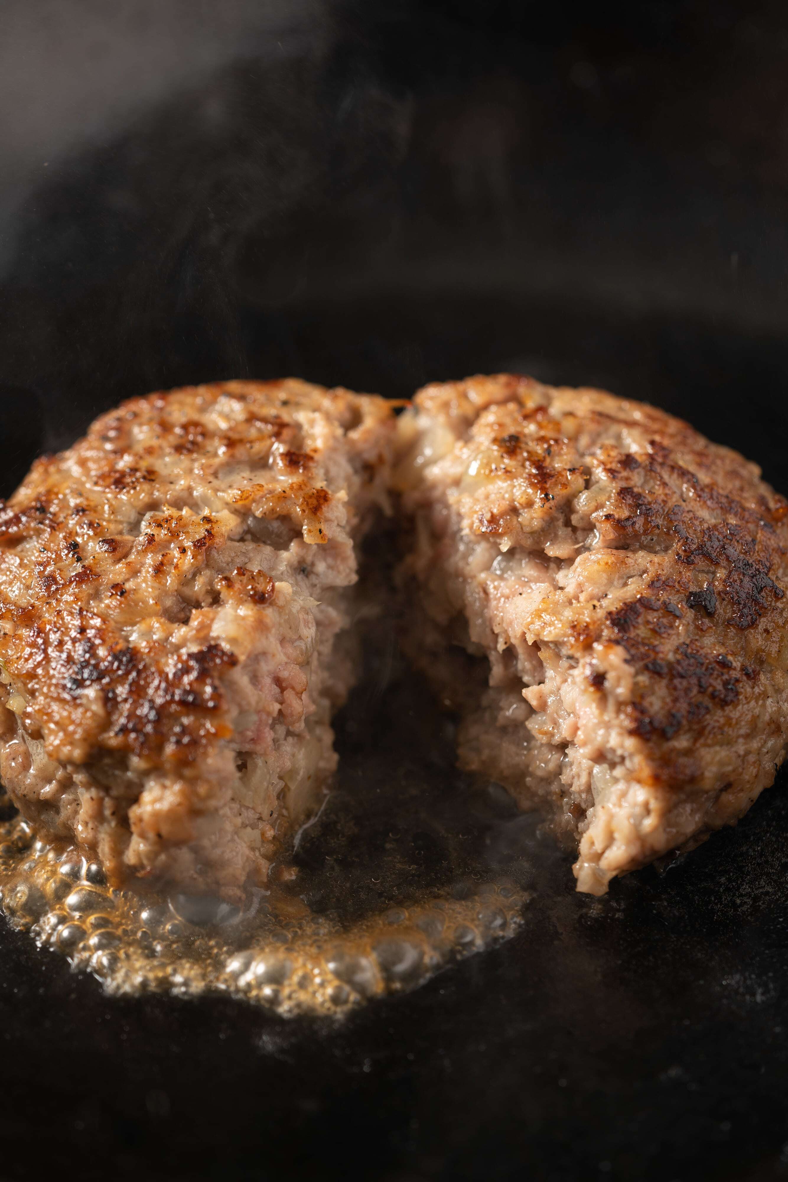 A4、A5ランクを中心に使用し、肉の旨味を強く感じることが出来る赤身(モモ、ウデ、スネなど)の部位を中心に使用しており、上品な肉質と上質な脂をギュッと閉じ込めた肉汁たっぷりのハンバーグです。